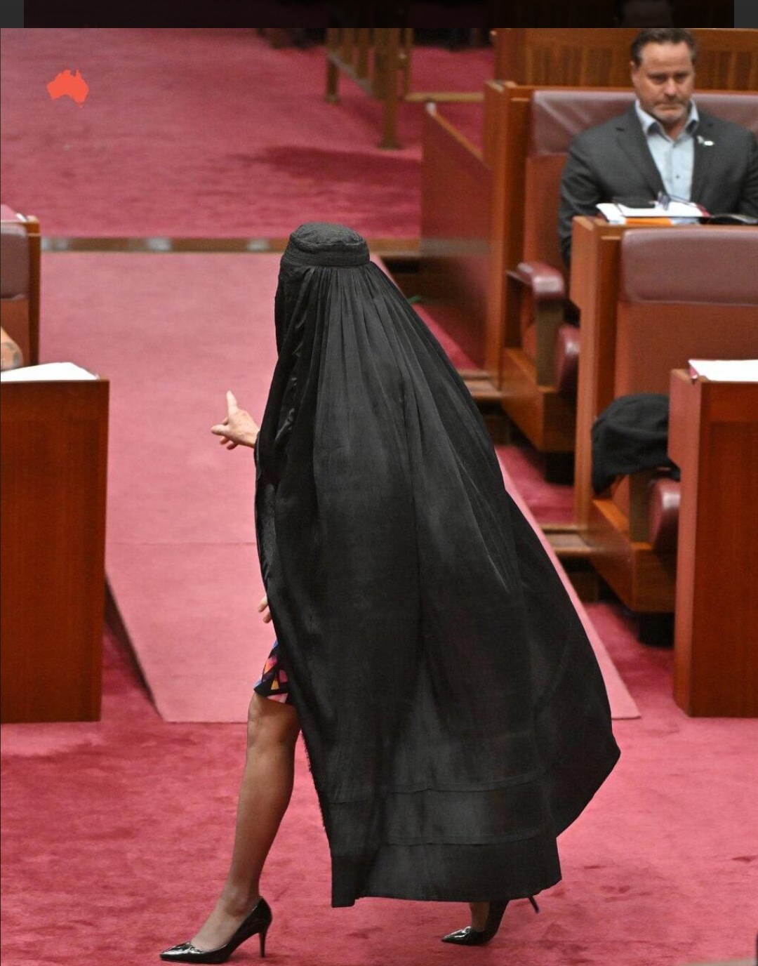 (بتاخد اللقطة): سيناتور استرالية يمينية ترتدى البرقع الأفغانى لتطالب بحظره