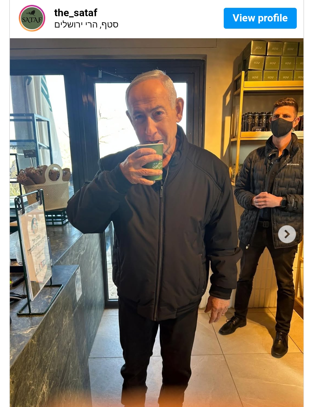 وقالت إدارة المقهى الذى يمكن عنصر احتياط، موجود بالفعل في الحرب الآن، أنه في ظل بعض ردود الفعل السلبية تجاه رئيس الوزراء، يفخر المقهى بزيارة نتنياهو، وقد صرّحوا قائلين: المقهى والمخبز مكانٌ يرحب بالجميع ويحترم كل شخص بغض النظر عن آرائه السياسية. هكذا كنا نتصرف منذ افتتاحنا، وهكذا سنبقى دائمًا. طلب رئيس الوزراء زيارتنا، فاستقبلناه بحفاوة بالغة لأنه رئيس وزرائنا.”.