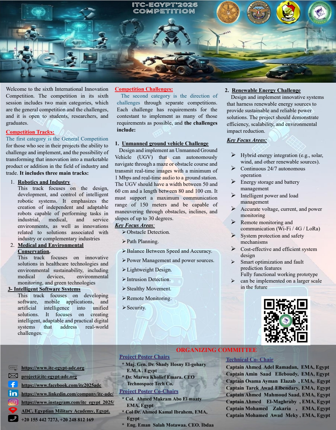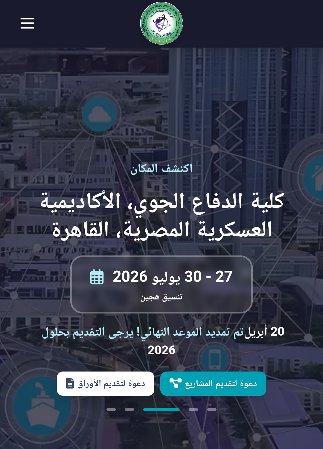 يُنظم المؤتمر الدولي الخامس للاتصالات (ITC-Egypt’2026) في كلية الدفاع الجوي المصرية. ويجمع المؤتمر خبرات باحثين من ثلاث قارات ومختبرات بحثية رائدة في مجال الاتصالات من جامعة كونكورديا، وجامعة كوينز، والكلية العسكرية الملكية في كندا، وجامعة أفيرو في البرتغال، وجامعة ديبول في الولايات المتحدة الأمريكية.