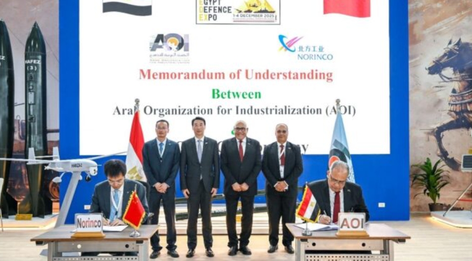 وقّعت الهيئة العربية للتصنيع، ممثلةً في مصنع الطائرات التابع لها، مذكرة تفاهم مع شركة “نورينكو” (NORINCO) الصينية الرائدة في الصناعات الدفاعية، بهدف تعزيز التعاون المشترك في هذا المجال الحيوي وتوطين أحدث التكنولوجيات الدفاعية.