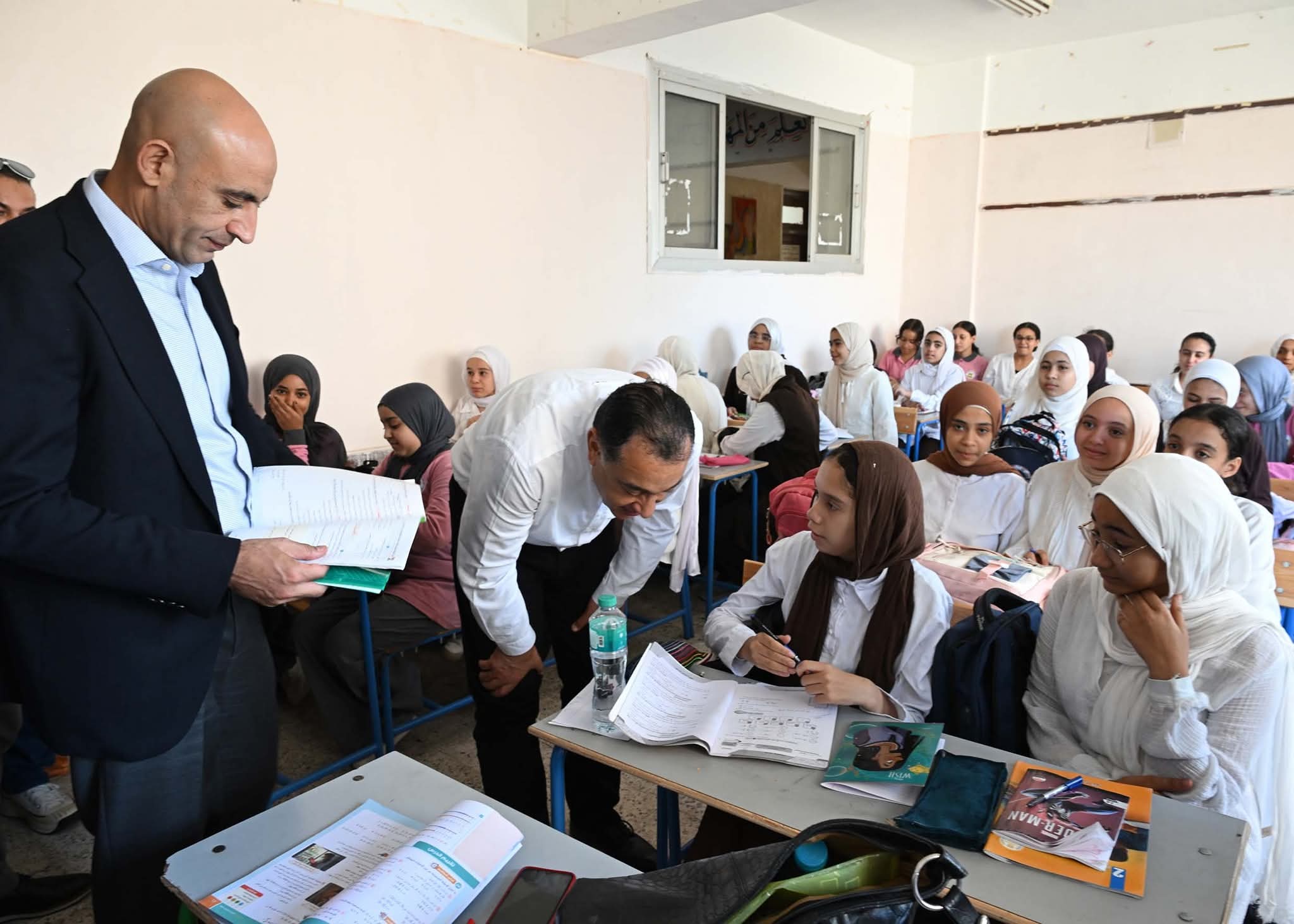 وأكدن الطالبات أنهن تسلمن الكتب بالفعل ويتبقى لهن الكتب الخاصة بالتقييمات، وخلال تواجده بأحد الفصول طلب من إحدى الطالبات قراءة أحد النصوص باللغة الإنجليزية وترجمته للعربية، وقامت الطالبة بتأدية ذلك بشكل مميز.