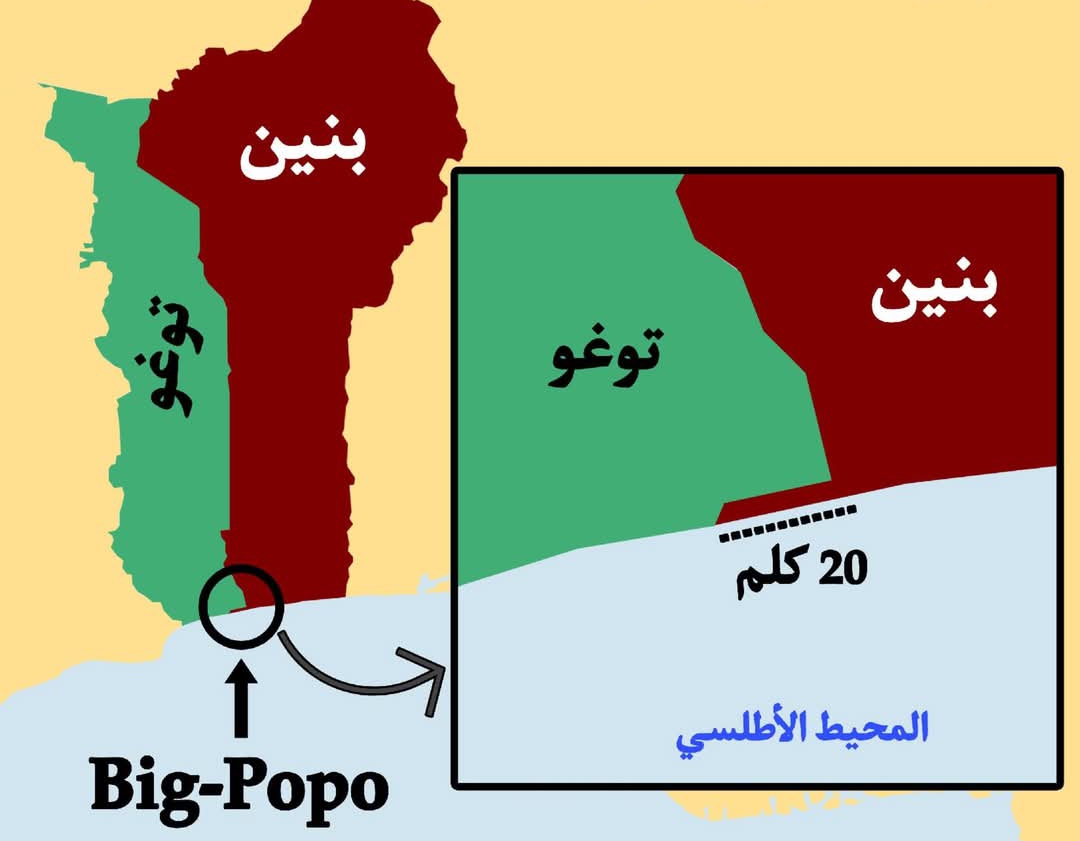 قد يبدو الأمر غريبًا، لكن دولة بنين تمتلك شريطًا ساحليًا ضيقًا لا يتجاوز طوله حوالي 20 كلم، يفصل جزءًا من حدود توغو عن الامتداد الطبيعي لساحلها على المحيط الأطلسي.
