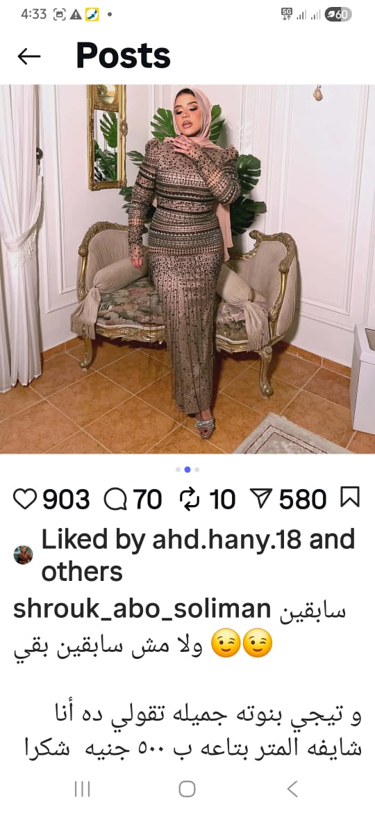 ومن ناحية أخرى، قامت شروق أبو سليمان مصممة فستان منة الجندي بنشر الفستان وبجواره صورة للإعلامية لميس الحديدي وهي ترتدي نفس الفستان مع تعليق موجه للفتيات اللاتي يقمن باستئجار أو تصميم الفستان بمصنعها قائلة : “سابقين ولا مش سابقين بقي .. وتيجي بنوتة جميلة تقولي دانا شايفة المتر بتاعه ب 500 جنيه ” .
