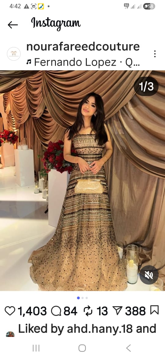 لترد مصممة الأزياء نورا فريد علي التعليقات قائلا :”أسفين إحنا ما بنقلدش إحنا اللي بنتقلد .. الفستان موجود علي الصفحة بقاله شهرين”.